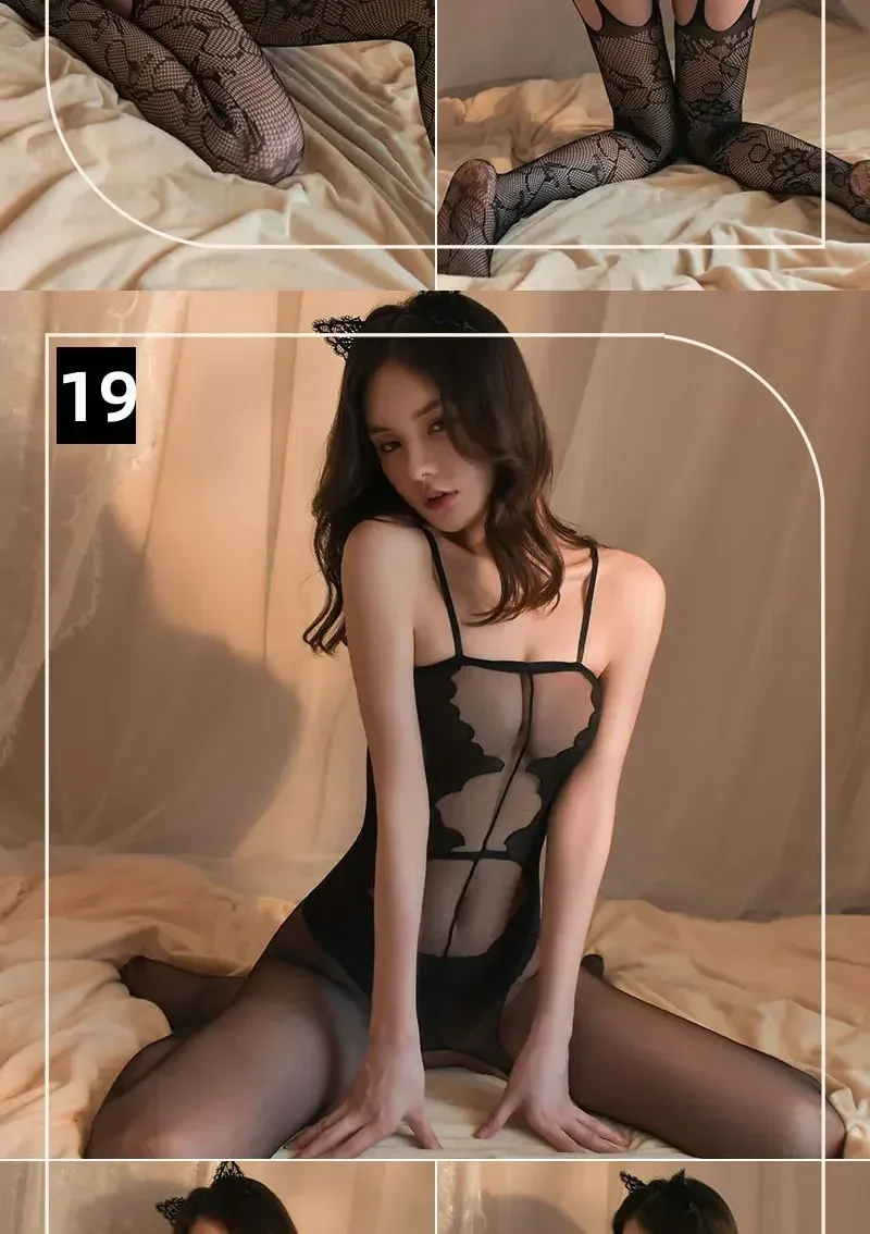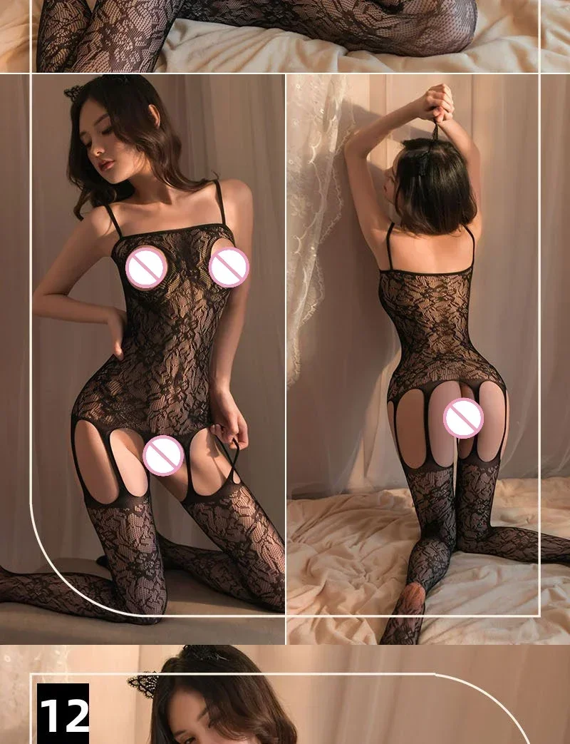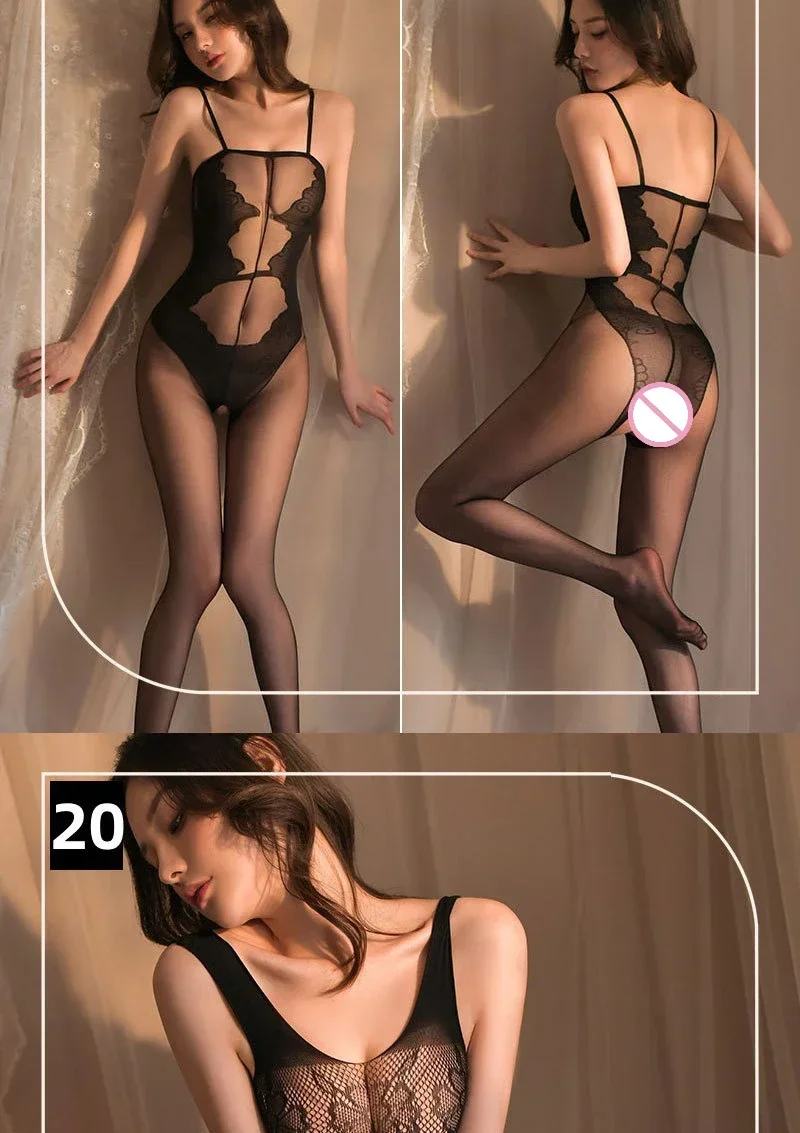 One Piece Crotchless Bodystocking for Sexiest Baby Doll Dress Mesh Sexy Lingerie Women Erotic Costumes Black Full Body Stockings